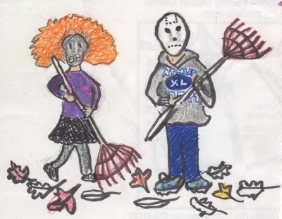 “Now, before dinner, and before trick-or-treating, I want you two to get those leaves raked.”