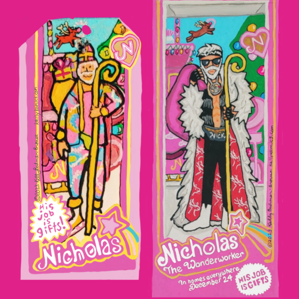 As I sat down to sketch out the holiday card, my original idea focused on the female iterations of Santa — La Befana, Perchta, Grýla, et al — each presented as special edition Barbie dolls.