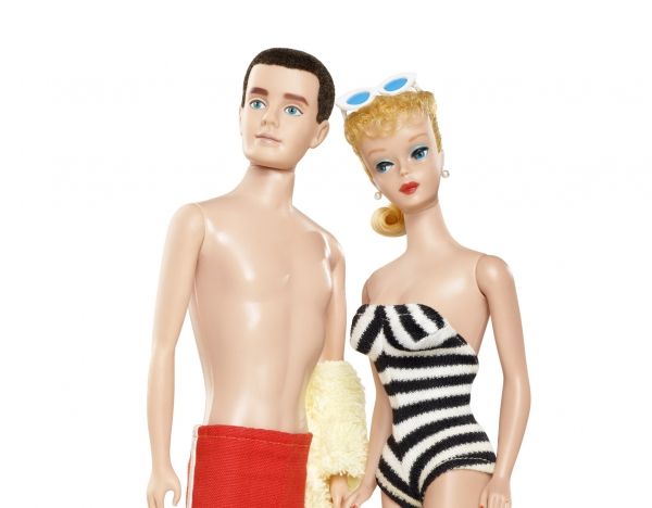The first Ken was available as a blond or a brunette, but only came “dressed in red bathing suit trunks with a yellow towel and sandals.”